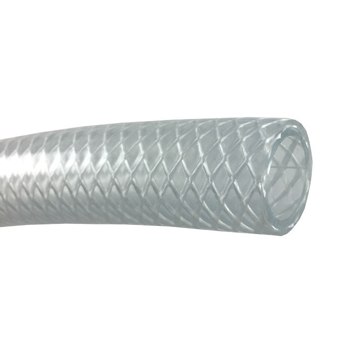 Flexible crystal clear, high tensile textile reinforced, PVC hose with transparent blue tint. Smooth interior to avoid sentiment build-up. Manufactured from FDA compliant and NSF/ANSI 51 listed materials.